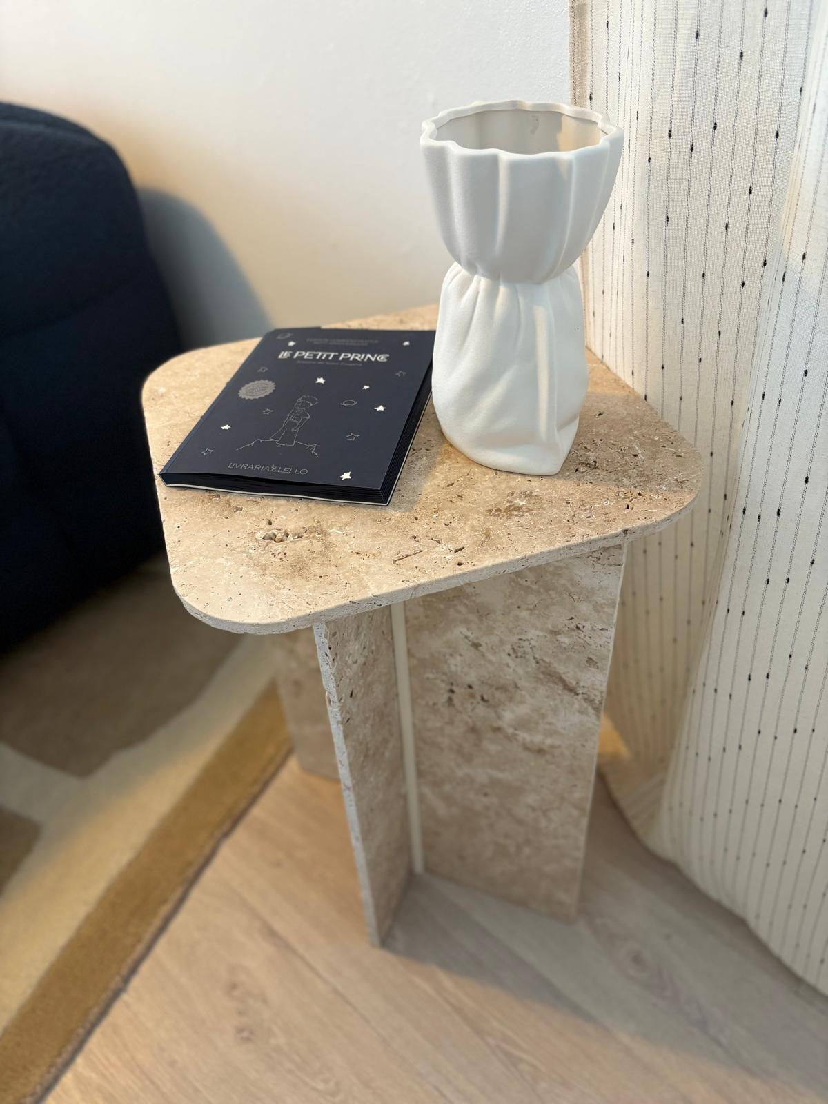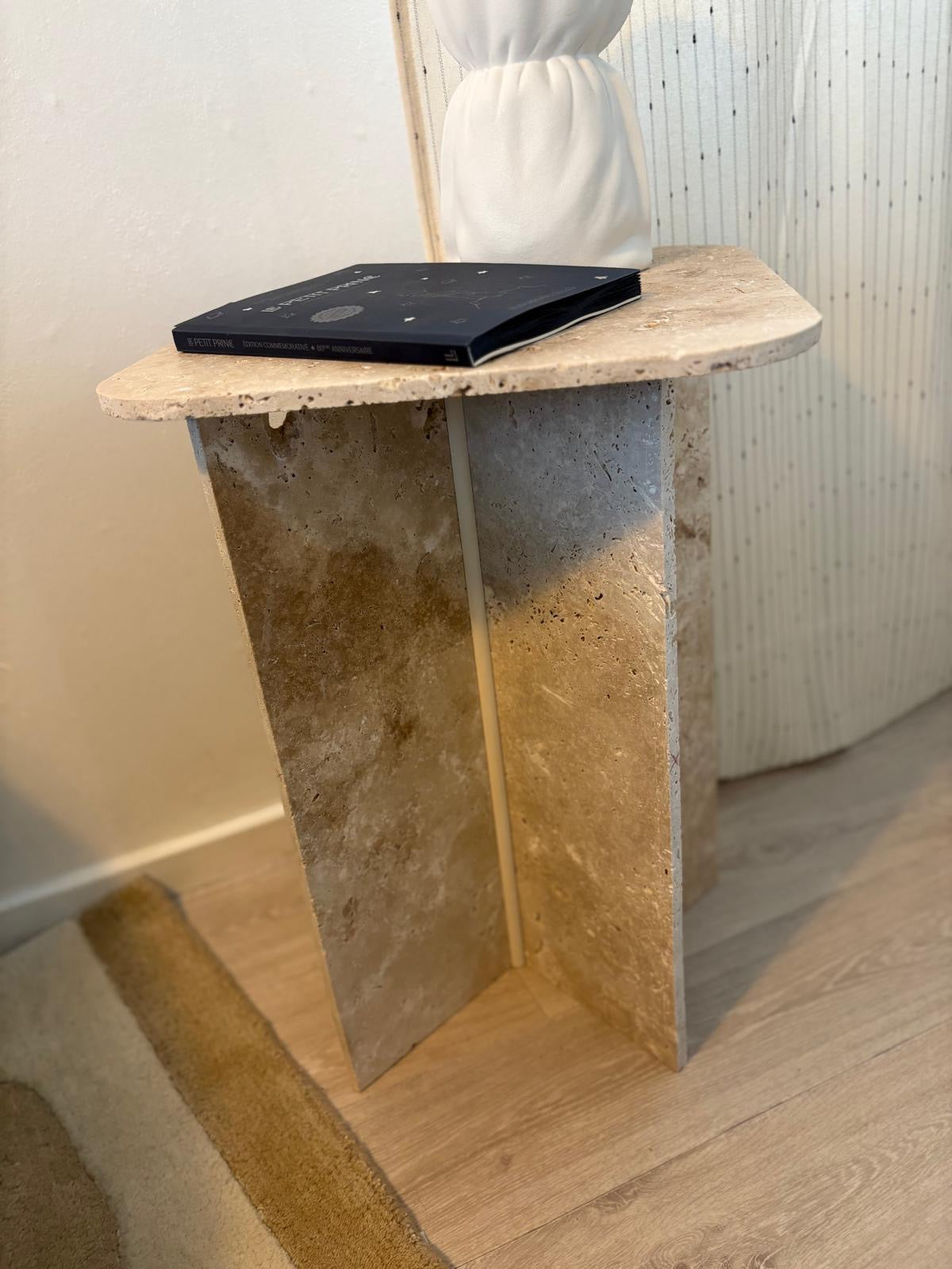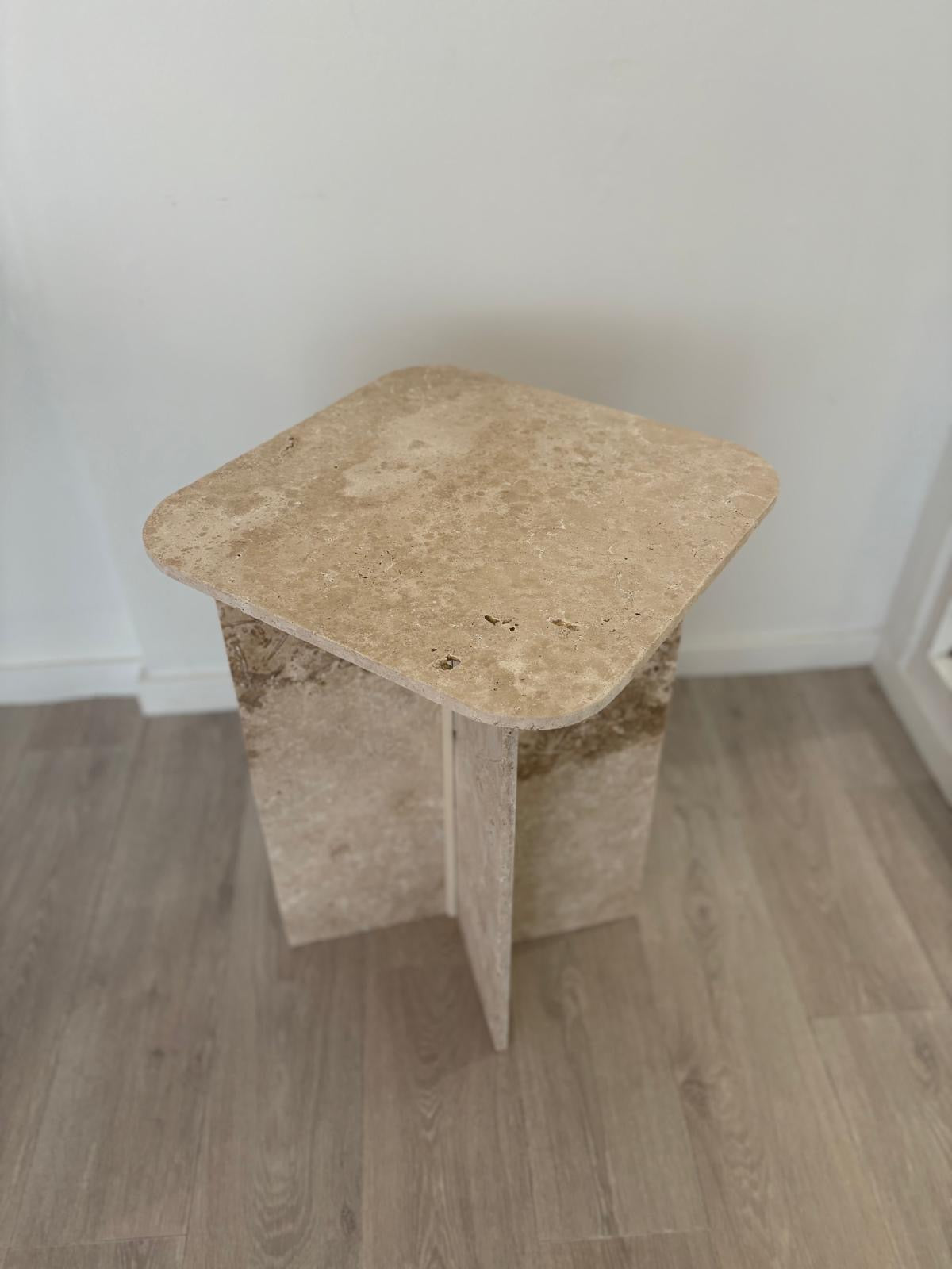 Les 3 pieds centré, et les plaques en travertin, ajoute une touche d’originalité, sophistiqué.