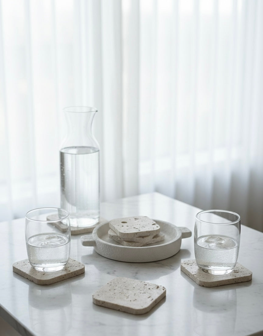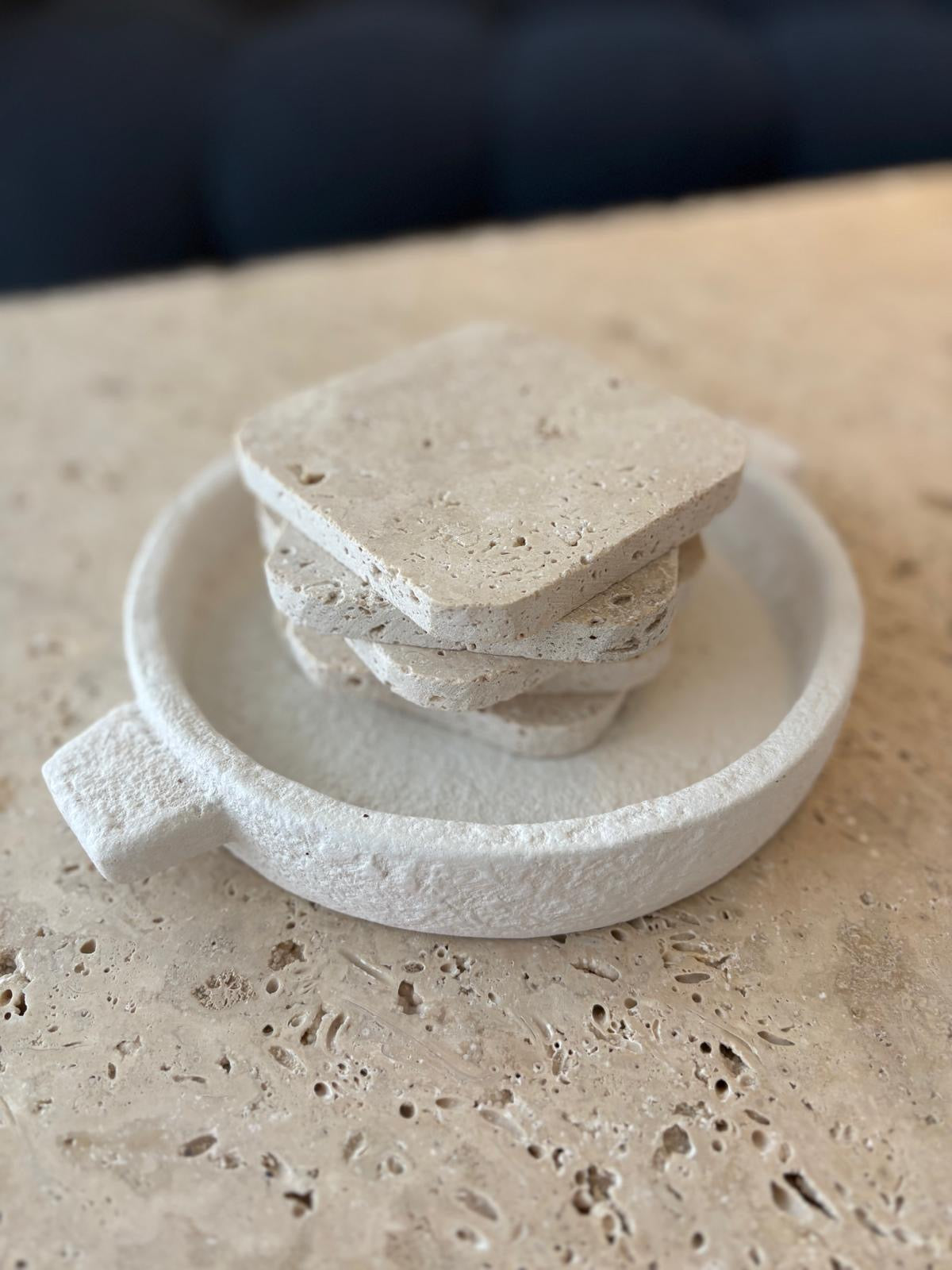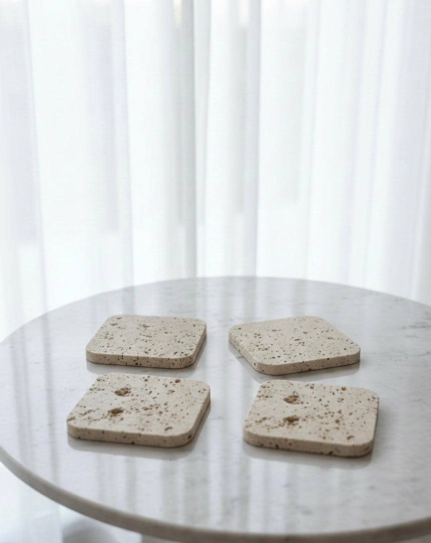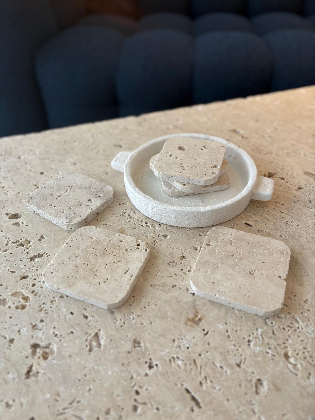 Il protège vos surfaces, tout en sublime vos moments du quotidien, le travertin pierre naturel au reflet subtile, apporte une note chaleureuse et authentique à votre Intérieur, chaque dessous de verre est unique, les variations de teintes et de veinage font partie du charme du travertin.