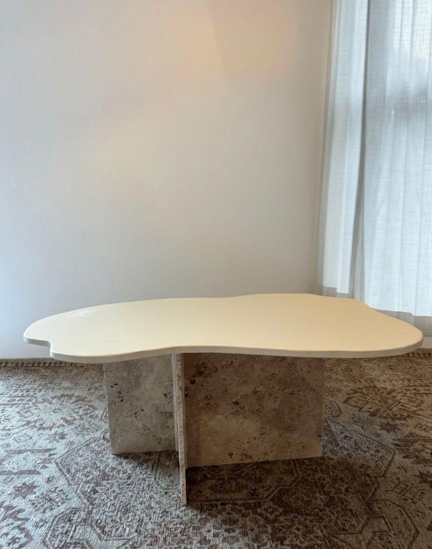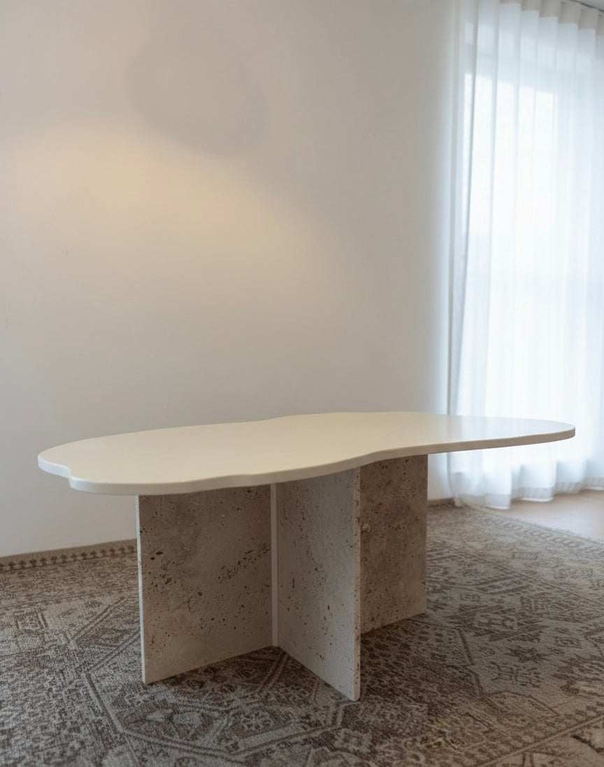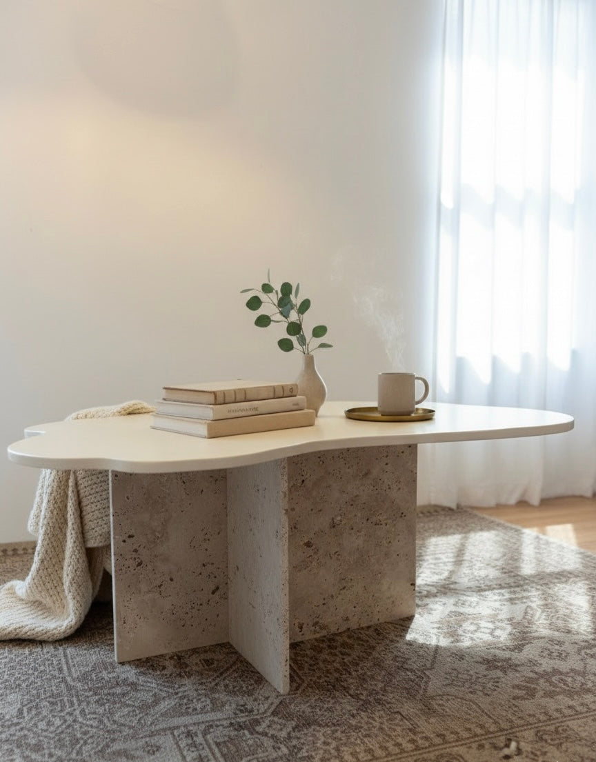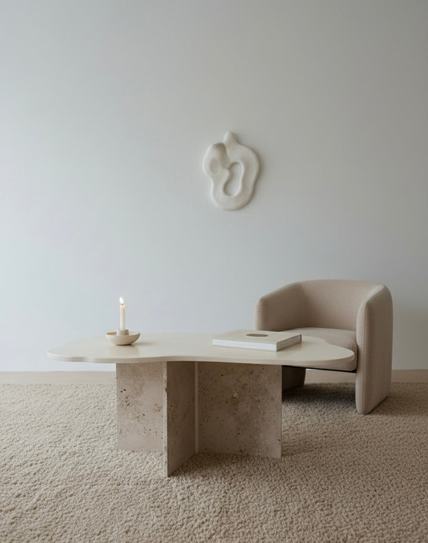 Avec ses trois plaques en pierre de travertin au centre, elle invite à la contemplation et devient la pièce maîtresse de votre intérieur.
